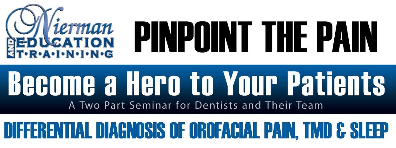Our Pinpoint the Pain seminar is designed as part 1 of a 2-part series providing dentists an opportunity to better understand common pain complaints in the head and neck, how to diagnose pain and how to work with a multidisciplinary team to treat patients in pain. The second part of the series,
